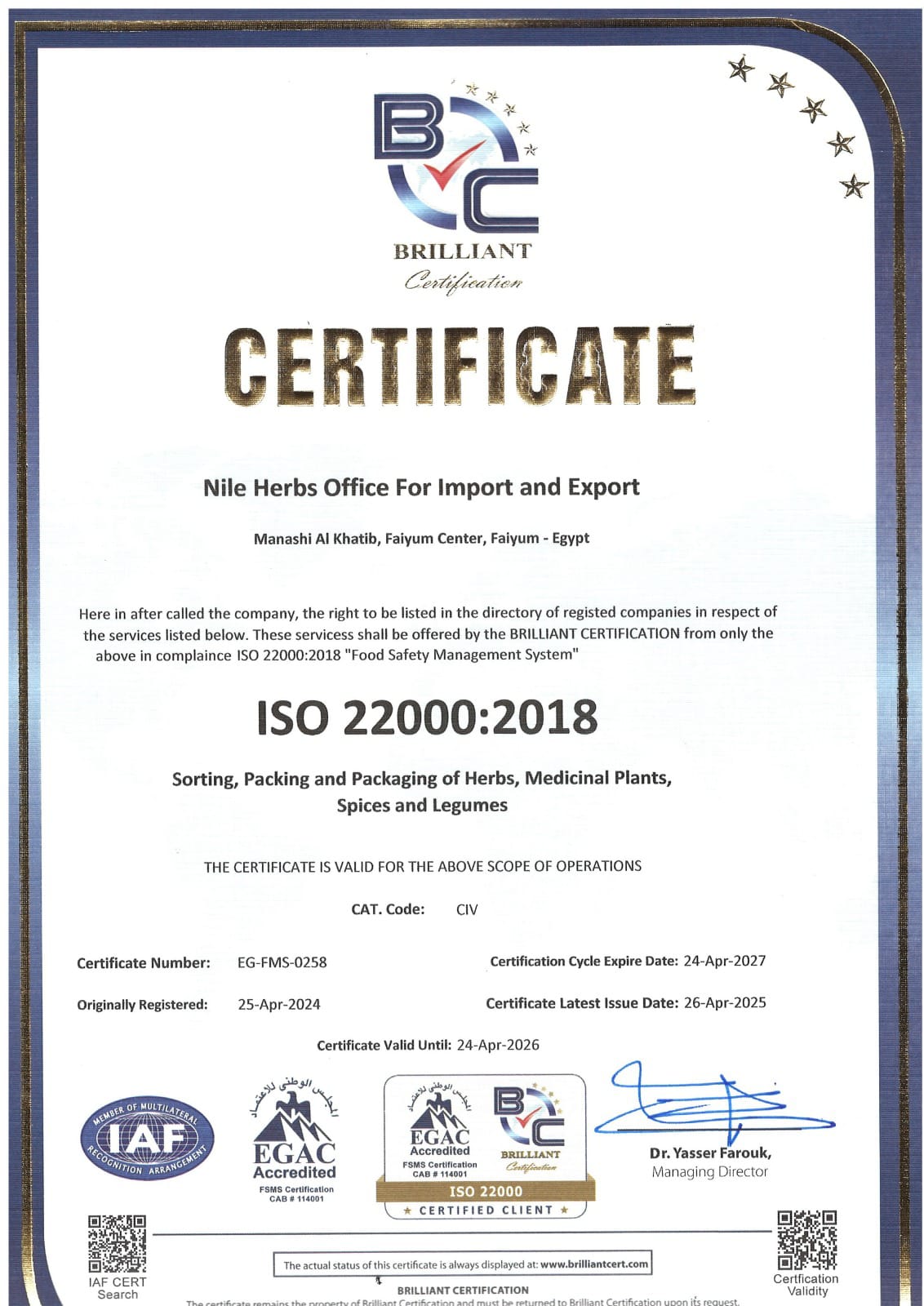 Discover the latest certifications and accreditations earned by Nile Herbs, ensuring our commitment to quality and excellence.